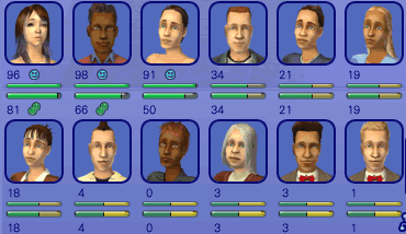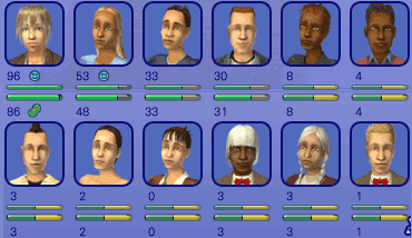 絵麻は気が強いシムでした。怒りの表情でどつき返し。この1回のどつき合いで、絵麻の人間関係パネルの牛は、