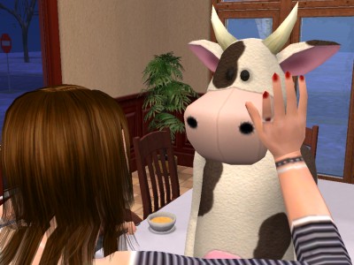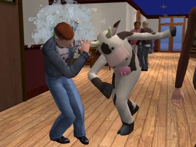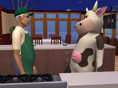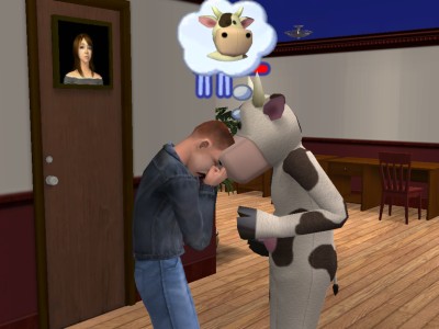 泣かせる。絵麻や航太郎なら「何しやがる」って牛を小突くとこなんだけど、グレッグは気弱なシムなので、泣いちゃうんですね。