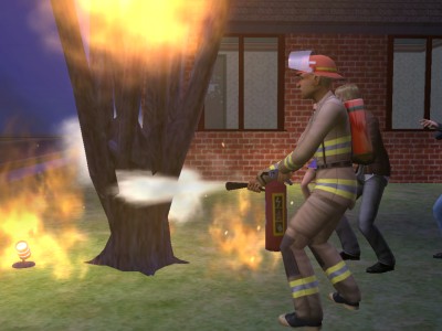 って、えええ、1人!? この大木の大火事に、消火器1本!? ほんとに消えるの!?