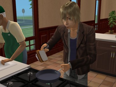 腹ペコ航太郎は、また自炊。なんだこれ。ランチミートサンドを焼いてるのかな。今回も成功しました。