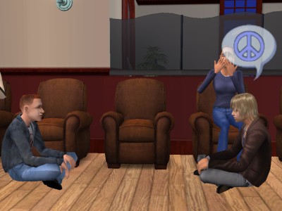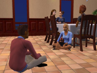 座りたいモヒカン君の邪魔になってしまい、カリーが強制的にどけられてしまいました。やっぱり語り合いは、邪魔の入らない部屋の中が一番だな。