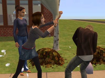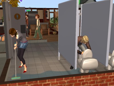 基本的にNPCは掃除もしないし本も片付けないんだけど、たまーにこういうシムが出てきます。うーん、どういう条件が揃うとやるんだろう? 前のホタルもだけど、不思議だよなぁ。