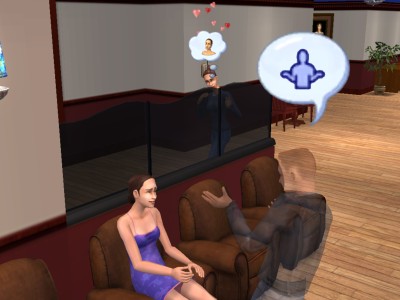 半透明のグレッグの話を面倒くさそうに聞いているリンジーに