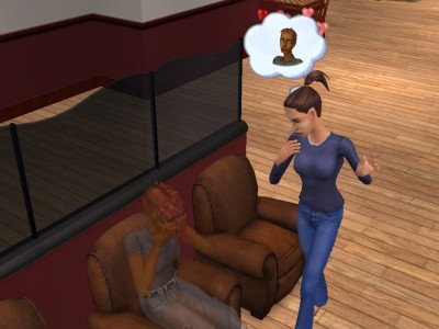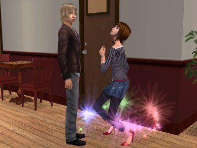 (ちなみに、仲良くしてると嫉妬する行動パターンは、多かれ少なかれ、全てのシムにあります。リンジーは航太郎に関して極度のやきもち焼きだった、ってことですね)