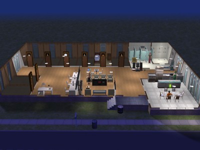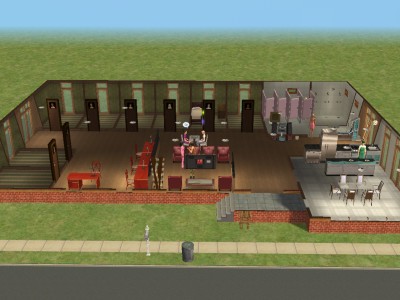男子寮とまるっきり同じ。家具や内装を、女性向けに暖色系で統一してあります(食堂以外)。