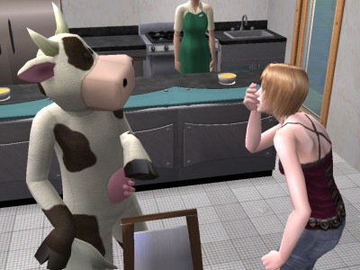 この牛の中の人は、男。(でも牛の着ぐるみはメス牛モデルだな)