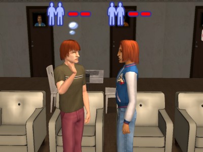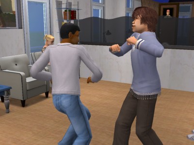 社交家シムが、友好度を上げようとハグしようとすると、超内気側がすんごい嫌がるんですね。社交度だけじゃなく快活さとか色々関係あるらしいけど。