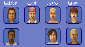 (「いまいち」の2人のうち、下の個性的な顔だちの人が、絵麻と同じ遊び好きタイプ。上の金髪の彼は調整型の心優しいシムのようです。社交家のバンダナ君は暁と同タイプ)