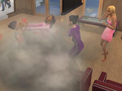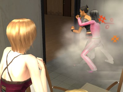グラノーラ寮でも男子寮でも見られなかったのに、何故かレイナはこの「小突きあって遊ぶ」が大好き。活発なシムの特徴かな。