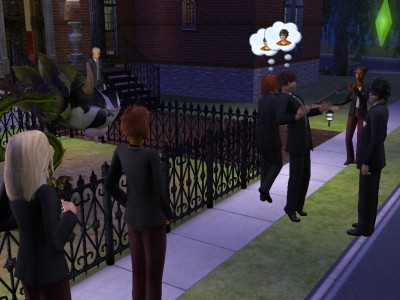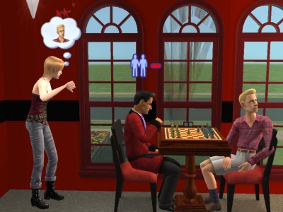 ……すみません。後ろにいる青セーターの彼女しか、女性がいなかったんですよ。(おばあさんは1人いたけど、特殊NPCで、シムチェックできる相手じゃなかった)