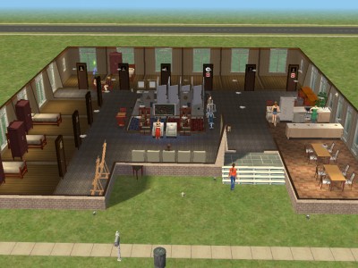これが全体図。数ある寮の中で、ここだけが唯一、トイレやシャワールームが寮のど真ん中にあります。左からも右からも入れるよう、入口は2箇所。結構便利でした。ほんとはチロルチョコのように真四角な寮にしたかったんだけどなぁ。