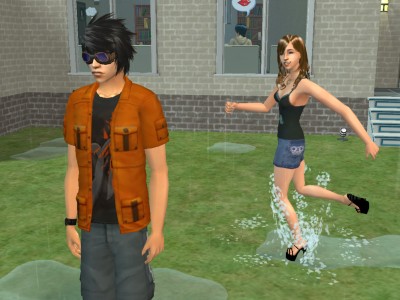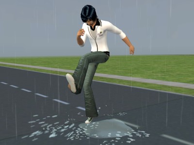 暁は運動着のまま、水たまりで遊んでました。…ガキかお前は。