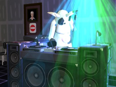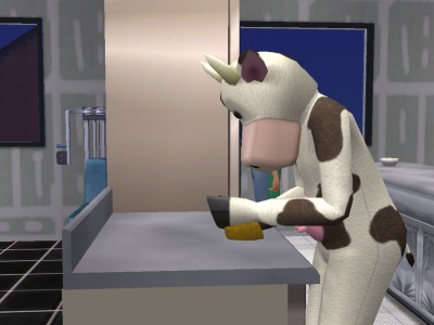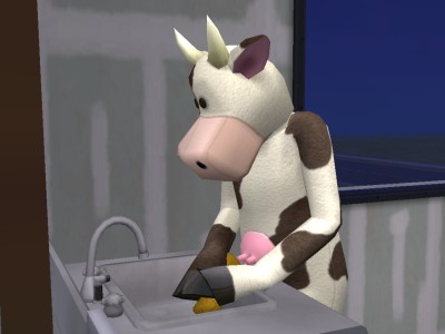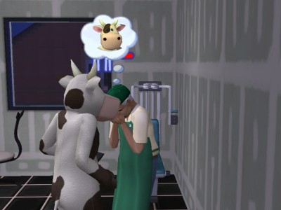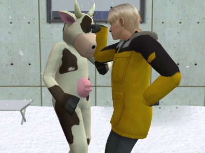 なんでこーゆーことになったのか、その真相は定かではありませんが、とにかく、うちのシムでは唯一、牛と親しくなってしまったレオン。