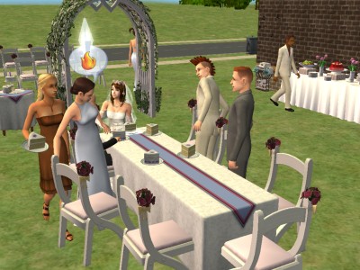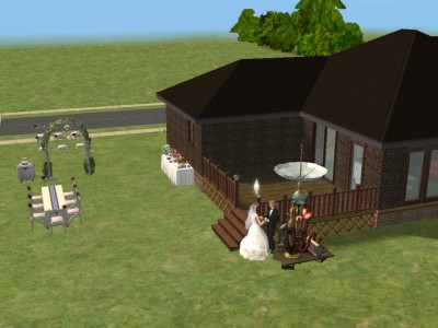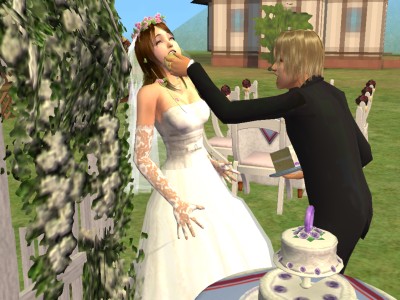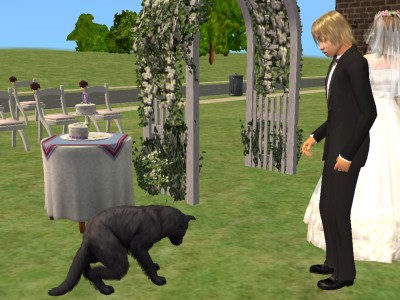 シムの結婚式も、うちでは航太郎と絵麻が初めて。神父さんとかは出てこない、いわゆる人前式のようです。