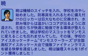…そういえば、モノリスヴィレッジでも、暁と同じ、教育キャリアで綺麗好き度4のハルが、風邪ひいてたっけな。全然風邪ひかないシムもいるんだけど、何か法則性あるんだろうか。