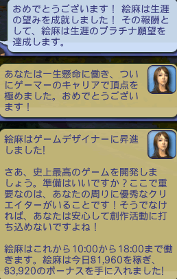 なんと、明日から2日間もお休みです。むむ…。でも、スキルアップのための時間が十分確保できたぞ。これなら土曜日には確実に昇進できるな。次がゲーマーキャリアの最高峰だから、頑張るぞ。