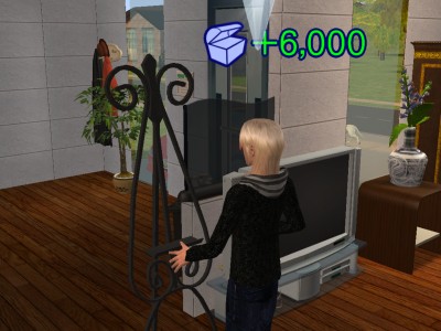 創作スキルMAXのレオンには、常に「最高傑作を売る」願望が出てるので、暇があったら絵を描かせております。この時の絵は、確か600シムオリオン前後で売れた記憶が。