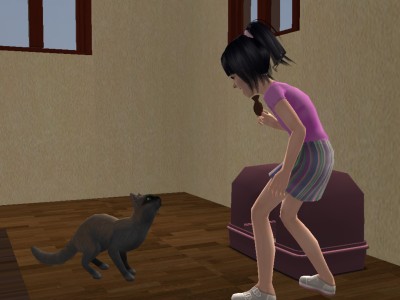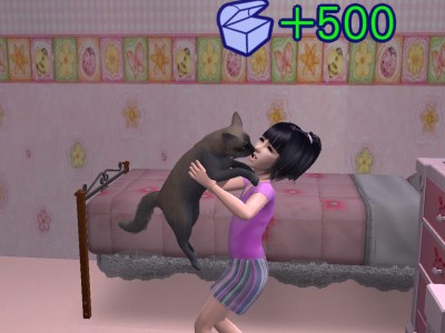 子供に成長したはるかは、朝から5号とじゃれてます。両親が双子にかかりきりになっちゃうけど、5号がいるから寂しくない様子。偶然だけど、ペット飼っておいて正解だったかも。