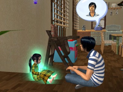 暁が話し方レッスン。気のせいかもしれないけど、社交的なシムの方が、話し方教えるのうまいみたいなので。