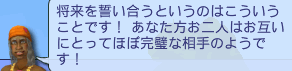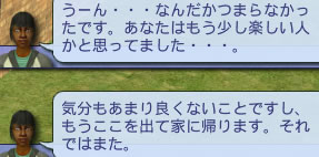 シムは、十代から恋愛可能。でも、まだ性的嗜好(ノーマルとかゲイとか)が決まってないので、シムチェックするなり口説くなりして決定しなくてはいけません。なので、このブラインドデートで異性を紹介してもらうことで、恋愛できるフラグを立てておこうって寸法です。