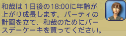 「和哉が奨学金をもらう」が願望に出ていた2人は、また願望ポイント増やしてました。この時点で航太郎、初代シム唯一の願望ポイント30万点越えです。うーん、絵麻ちゃんも2度目の生涯願望、チャレンジした方がいいかなぁ。