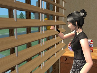 相変わらず、意味もなく窓拭きするすみれ。特に何かの欲求メーターがアップする訳でもないのに、なんで窓拭くのかなぁ…。