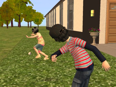 さっそくキャッチボールで遊ぶ2人