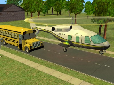 スクールバスの到着と同時にヘリ到着