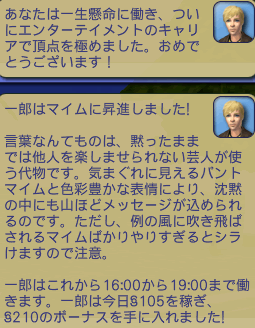 アルバイトは3段階しかないので、あっさり極めてしまいました。お金を稼ぐ願望が出ていた一郎は、気分最高状態。その上、