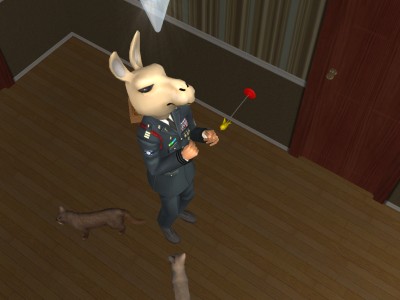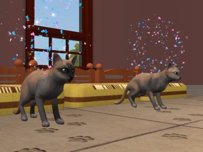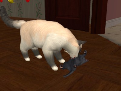 ブルーウォーター村に住むジャケーさんをお呼びして、3匹をお譲りしました。ジャケーさん、デフォで村に住んでるプレイ可能シムですが、プレイ予定はありません。猫も年とらないままですね(笑)