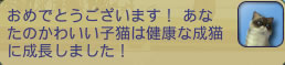 こちらはオスです。これで、2匹揃って成猫になってくれるはず。計算すると花子が老齢期に入る方が先なんだけど、まあ、滑り込みセーフでしょう。やっぱ老齢期になってからの生涯の望み達成じゃ、寿命は太郎より短いかなぁ…。