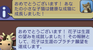 はー…長かった。やっぱり職業の頂点極める系統って、あまりにも楽だよなぁ。ラマ君とこで孫猫増やす作戦をやらなかったら、花子の寿命が尽きてたかも。