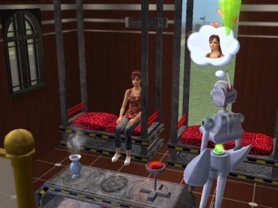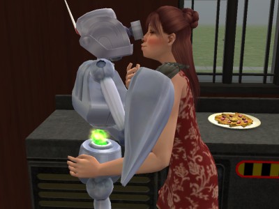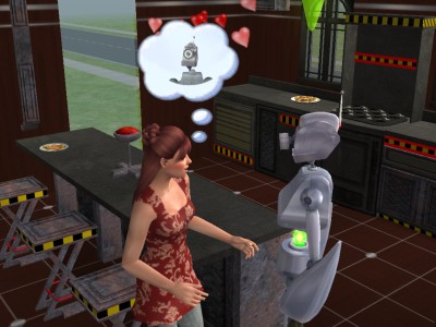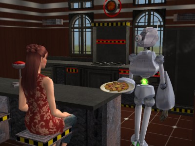 サーボ・ロボットは、ロボット作りをちまちま続け、ロボット製作のゴールドバッジを獲得したシムだけが作ることのできる、ヒューマノイド・ロボ。作った時は無性別のただの調合金の塊ですが、「初期化」をすることにより、他のシム同様に働いたり学んだりできるようになります。ちなみに、ロボ・スズキは男性の知識願望として初期化されてます。