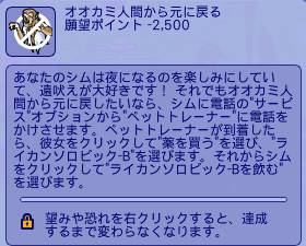 ハルやモトコはロボにオオカミ人間のまんまでいて欲しいみたいですが、ロボ本人の恐れ欄にはそういうのが出てないので、出てないうちに人間に戻っていただきましょう。