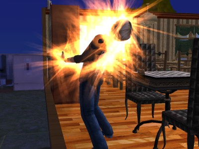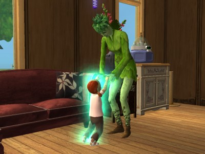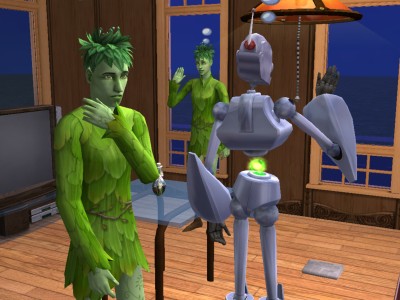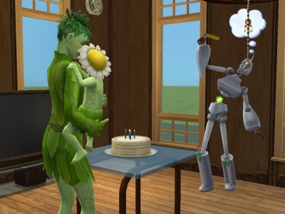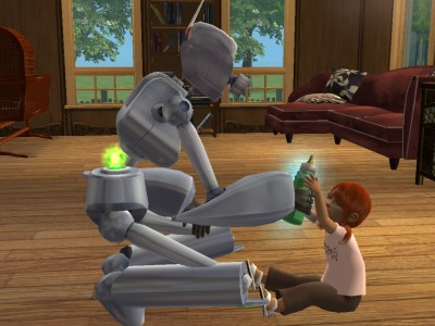 これ、インジケーターが緑以下のシムが作ると、ミルクを作るのに失敗して、子供が吐いちゃいます。その点、ロボは生涯願望達成して、いつだってプラチナ状態で、安心です。