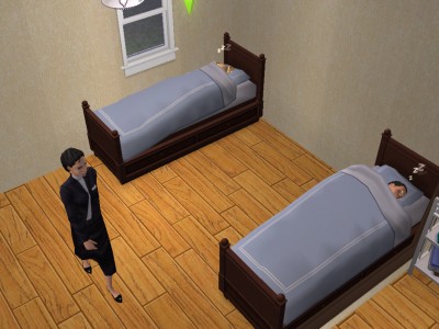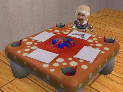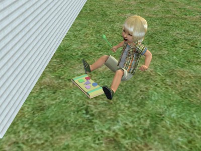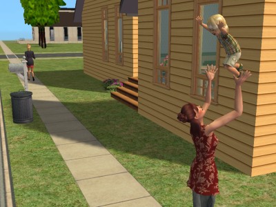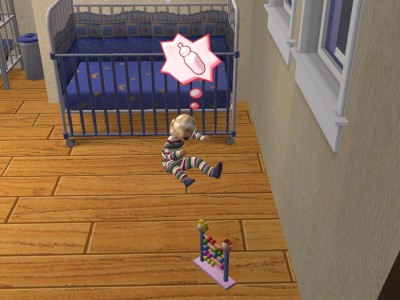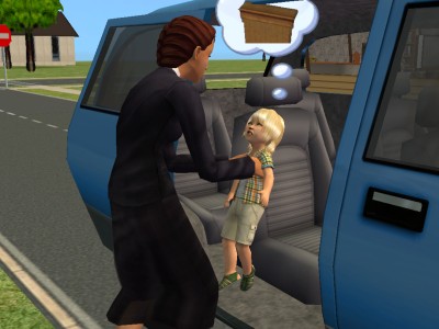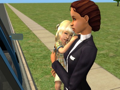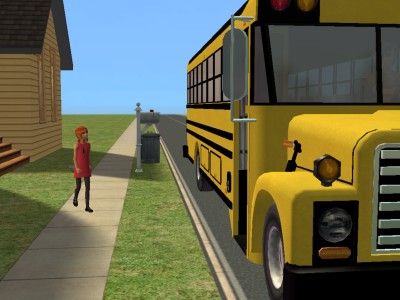 ミリーちゃん、初登校。この村、オリジナルの子供シムはミリーちゃん1人です。寂しいなぁ…。