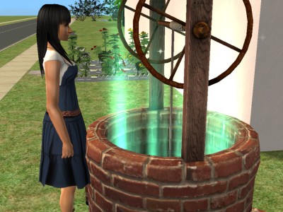 噂によると、この井戸にロマンスをお願いすると、相性のいいシムが現れてキスをしてくれるとか。